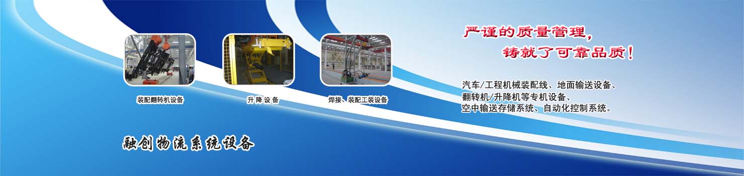 無錫市融創(chuàng)物流系統(tǒng)設備有限公司專業(yè)設計制造翻轉機,裝配翻轉機設備,各種生產(chǎn)線總裝線部裝線,是翻轉機的專業(yè)設計制造廠家,最新翻轉機價格?來自無錫融創(chuàng);無錫融創(chuàng)公司主要產(chǎn)品系列:裝配翻轉機設備、升降設備、焊接裝配工裝設備,工程機械總裝部裝線、卡車總裝及部件裝配線、轎車總裝及部件裝配線、白色家電裝配線、農(nóng)業(yè)機械裝配生產(chǎn)線、地面輸送設備、空中輸送設備、電動氣動小車等。無錫融創(chuàng)生產(chǎn)的各類專業(yè)成套設備已廣泛應用于轎車、卡車、客車、各類工程機械、發(fā)動機、車橋、農(nóng)業(yè)機械、郵政、家電等行業(yè),特別在工程機械產(chǎn)品裝配線、卡車生產(chǎn)裝配線領域,是國內(nèi)最大的設備供應商之一。